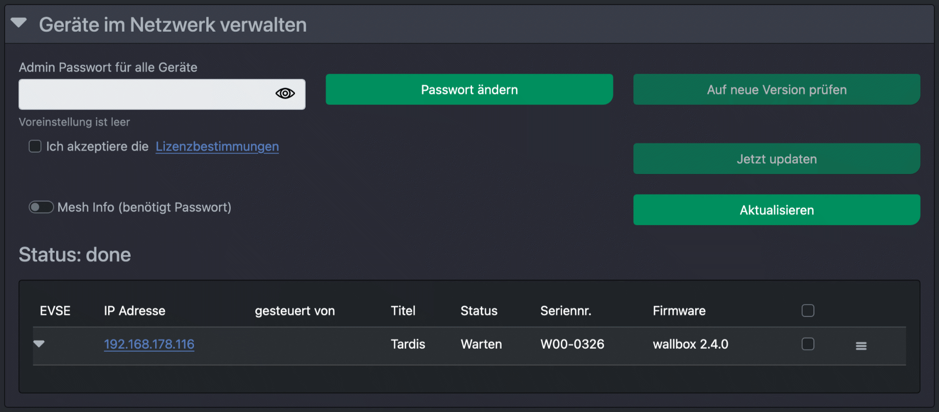 Sie können hier Geräte in Ihrem IP Netzwerk verwalten, neue Geräte zum Charging Manager hinzufügen, Firmware Updates einspielen, das cFos Mesh verwalten, etc.